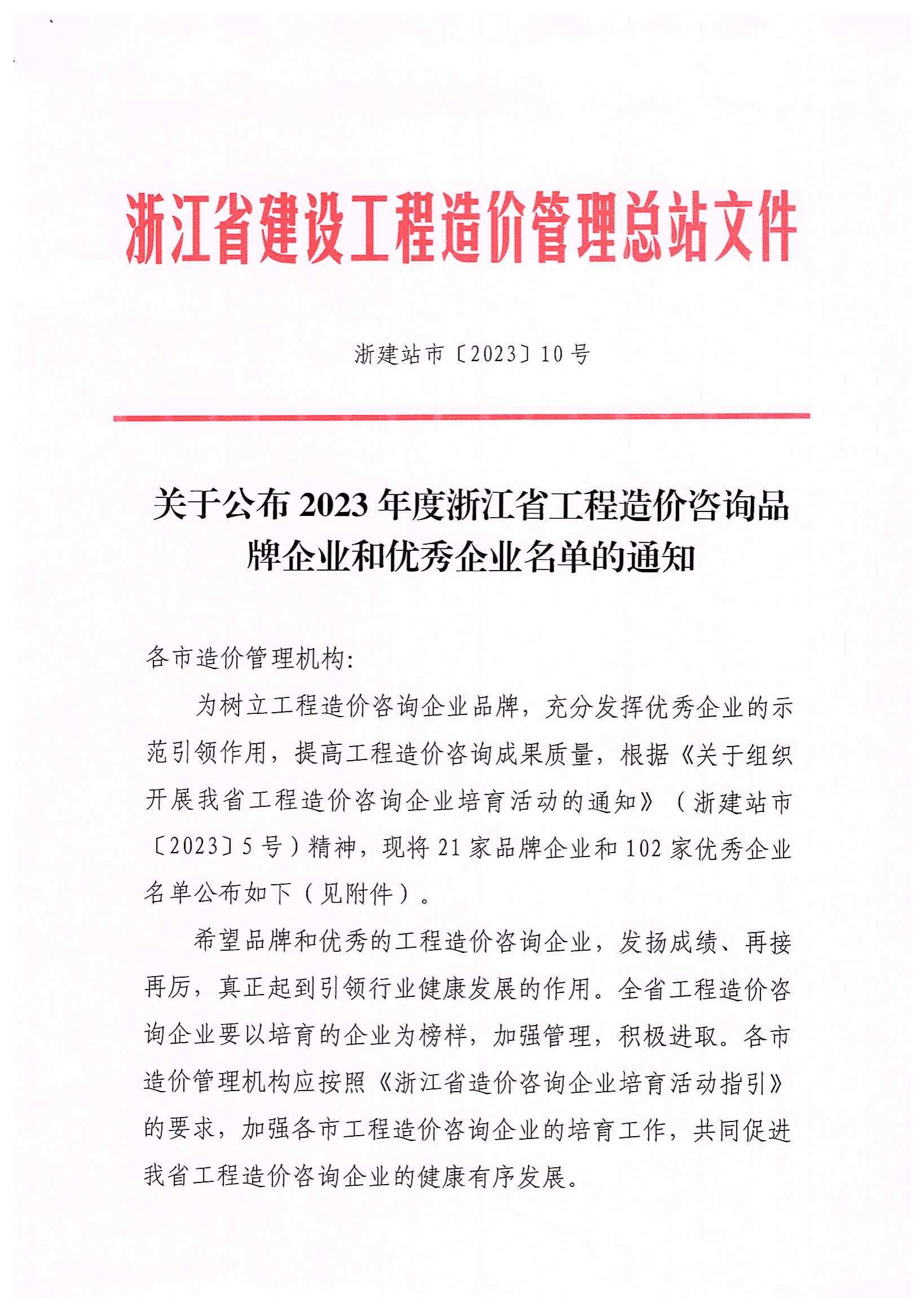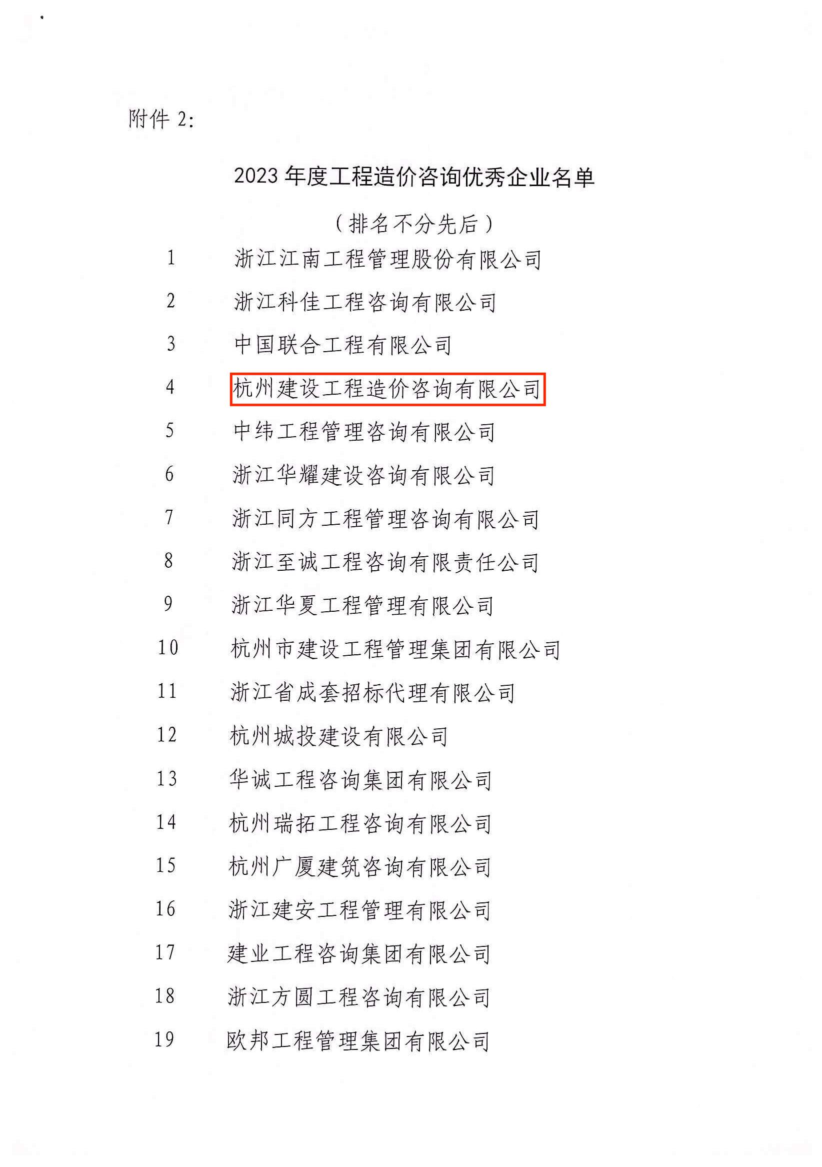 浙江省工程造价咨询企业动态信用能力AAAAA