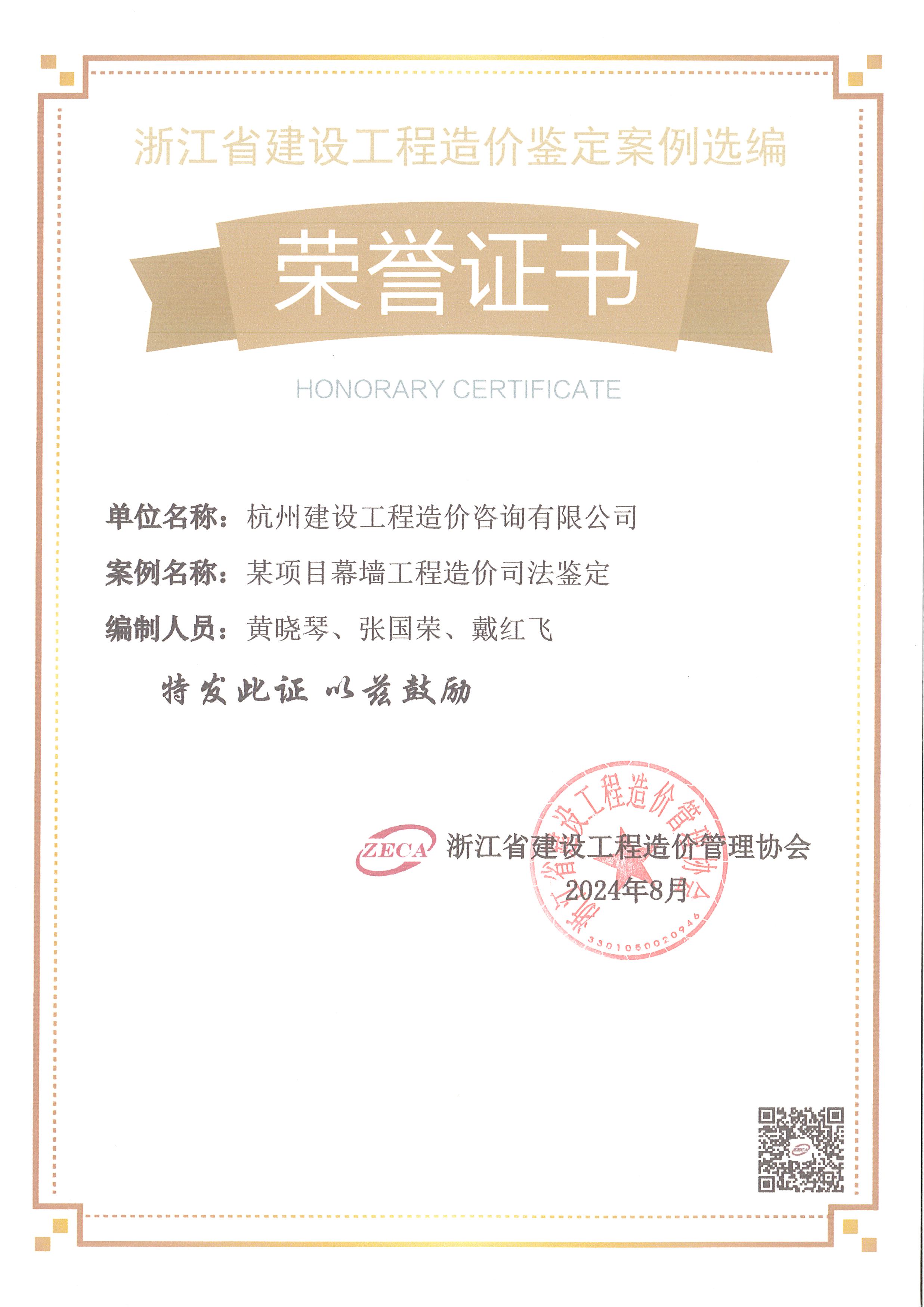 公司土建一部副经理黄晓琴申报的“某项目幕墙工程造价开云在线登录”的司法案例成功入选。该案例梳理了争议焦点、造价鉴定难点,提出的意见鉴定分析以及处理结果可借鉴性强,最终该鉴定案例成功进入浙江省建设工程造价鉴定案例选编(共计15篇)。