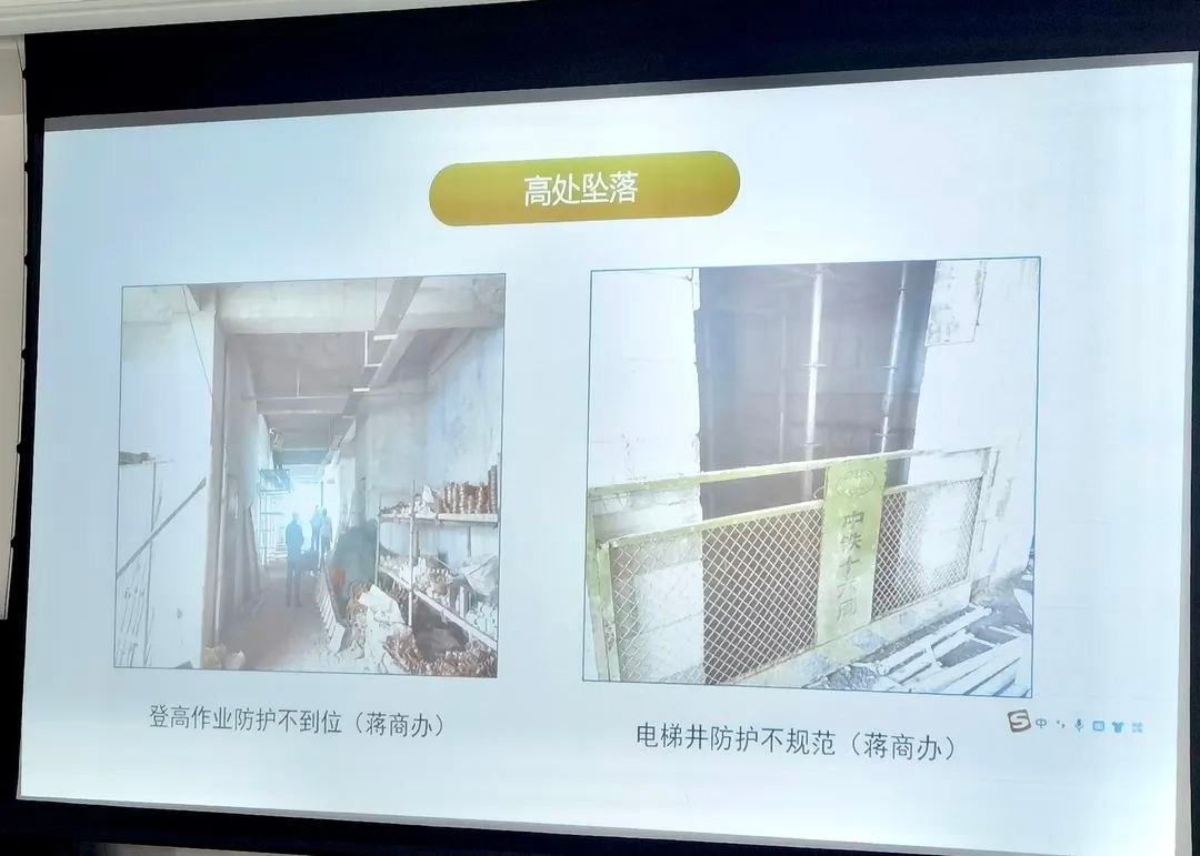 其次由工程部汇报安全月专项检查过程中发现的各个项目中存在的安全问题,各项目负责人对项目的安全问题整改情况进行汇报;监理事业部总经理黄总通过案例分析、现场图片展示等方式,从高处坠落、物体打击等8个方面讲解各类安全问题的隐患特点、成因分析以及监理对现场安全的管控要求。
