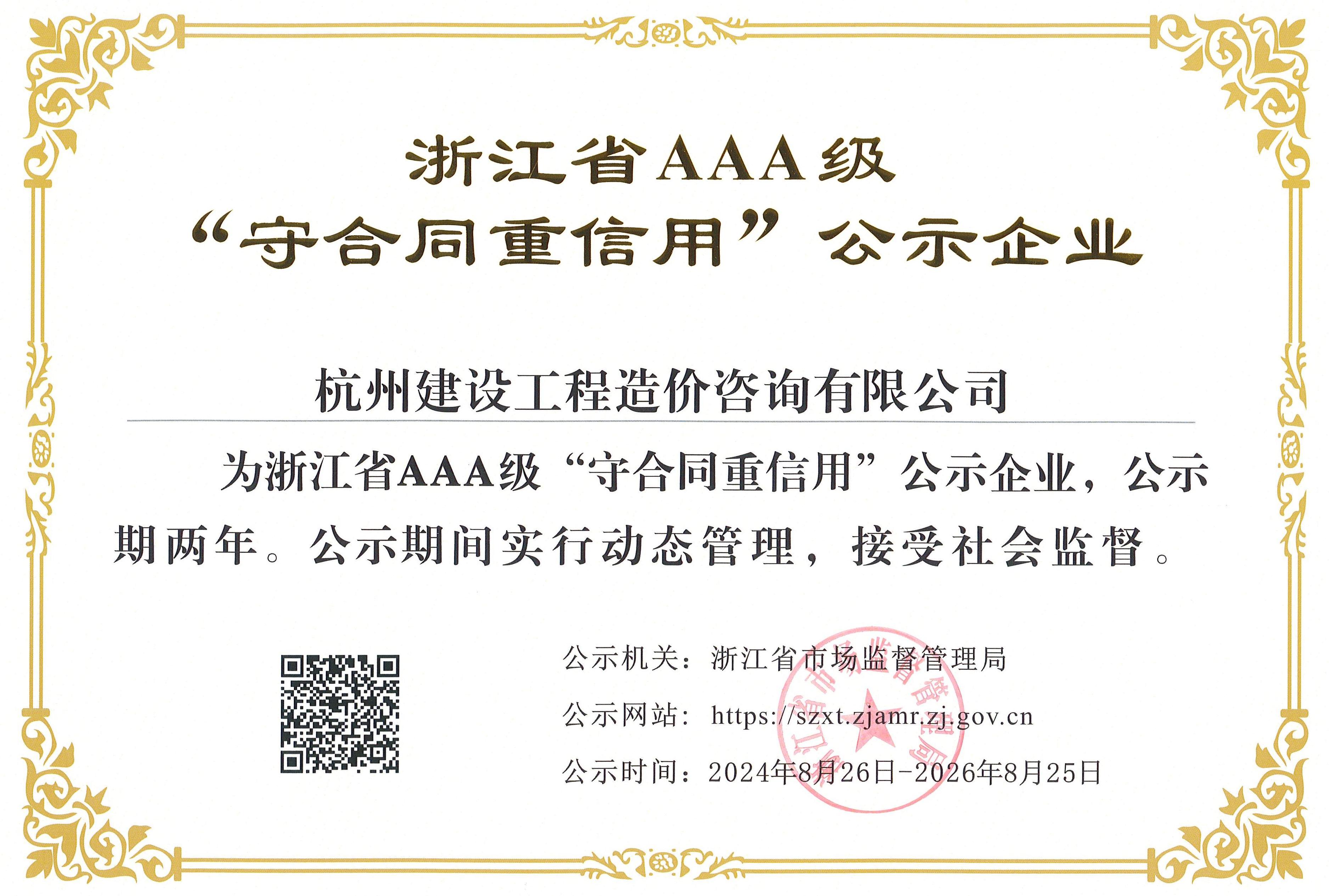 3.浙江省工程造价咨询企业动态信用能力AAAAA