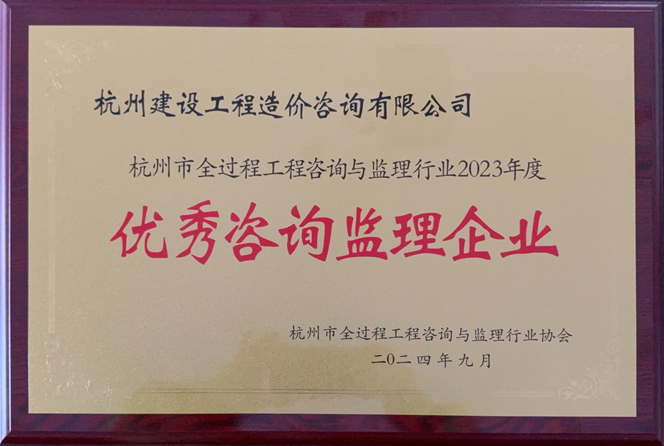 1.杭州市全过程工程咨询与监理行业2023年度优秀咨询监理企业